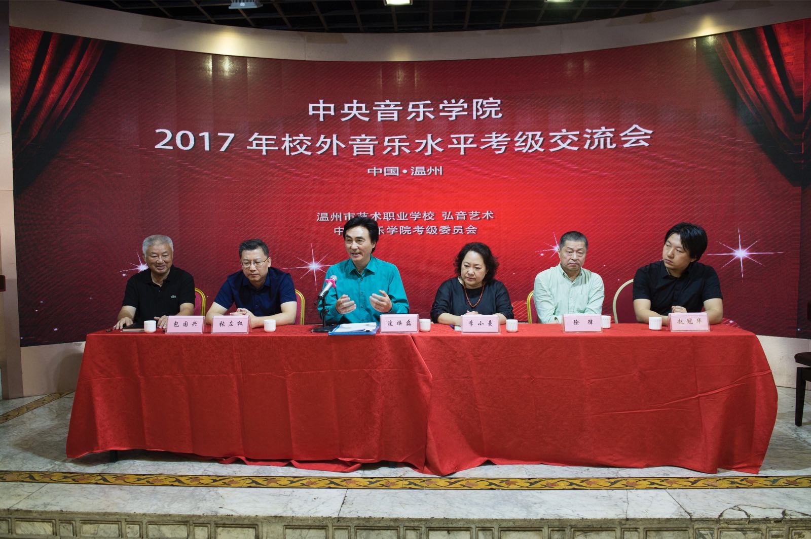 2017年10月7日中央音乐学院校外音乐水平考级(温州)交流会在温州金谷大酒店隆重召开,280多名温州地区的音乐教师和专业人士莅临会场。中央音乐学院党委副书记、考级委员会常务副主任逄焕磊、秘书长李小曼、专业助理张左权、徐律、赵冠华等老师来温参加了会议,与温州的音乐专业教师们见面交流。